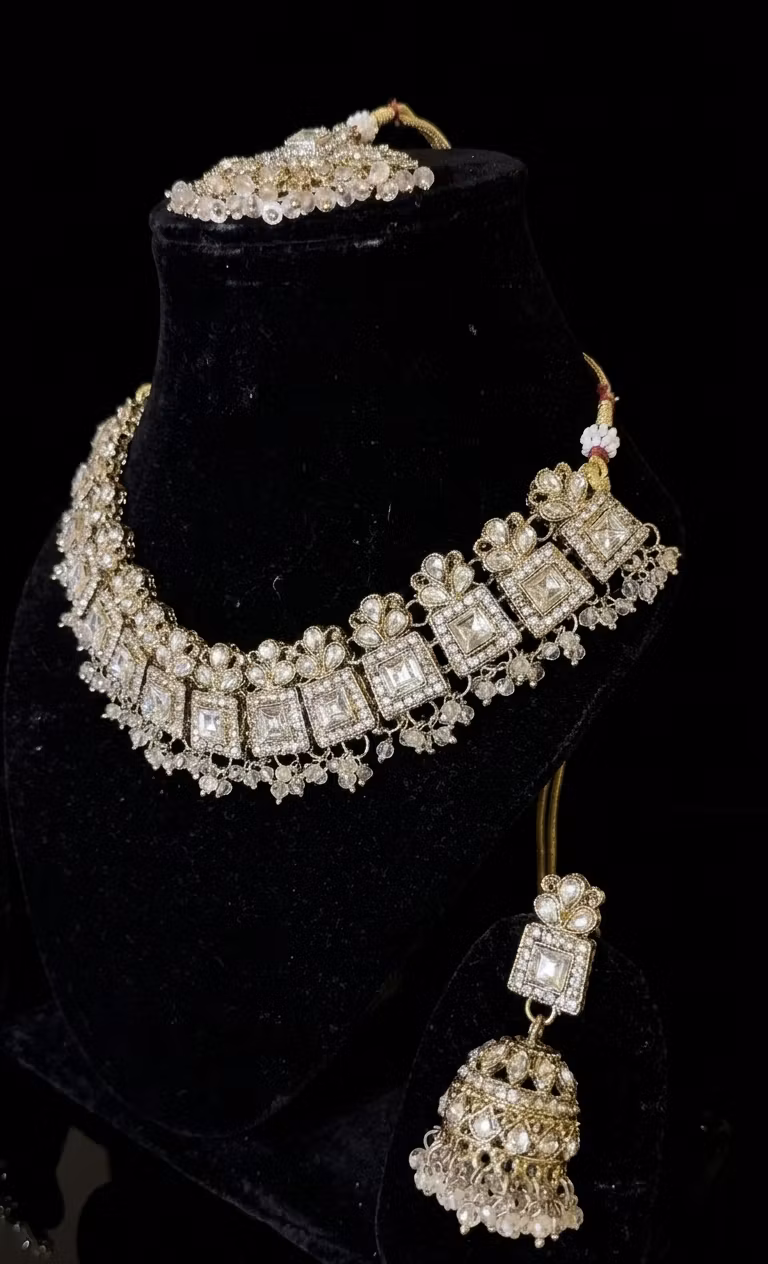 Elevate your look with this stunning, traditional Kundan-inspired jewelry set, a perfect blend of Desi elegance and modern bridal trends for weddings in Sweden.