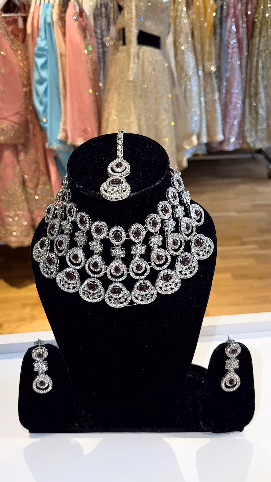 Necklace set silver/maroon