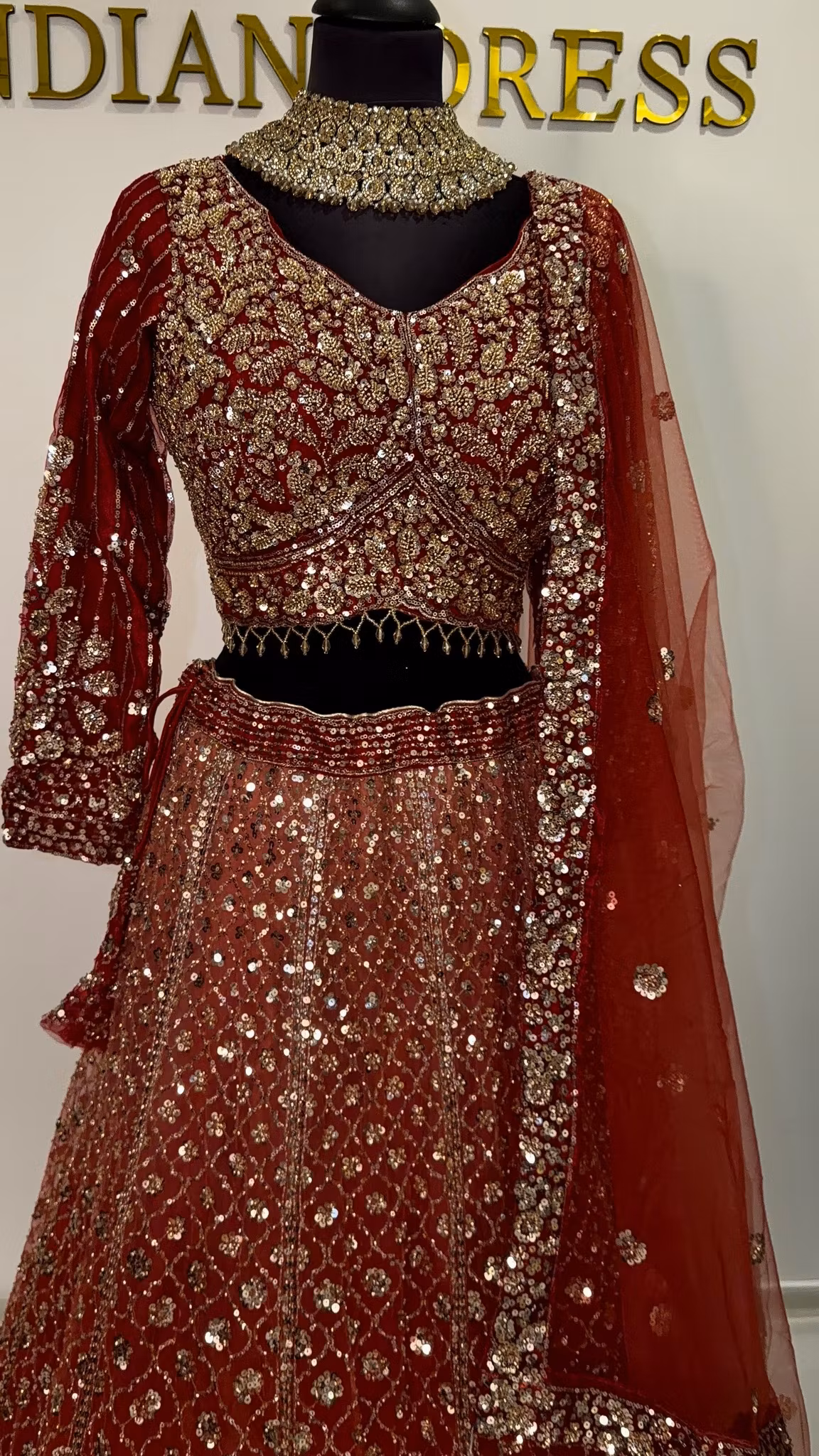 Elevate your festive wardrobe with this stunning two-tone Red and Gold Lehenga, exclusively from Indian Dress Sweden. This masterpiece combines traditional craftsmanship with a contemporary silhouette, making it the perfect choice for weddings, bridal showers, or high-end South Asian galas. The "two-tone" fabric creates a mesmerizing depth, shifting beautifully under different lighting.