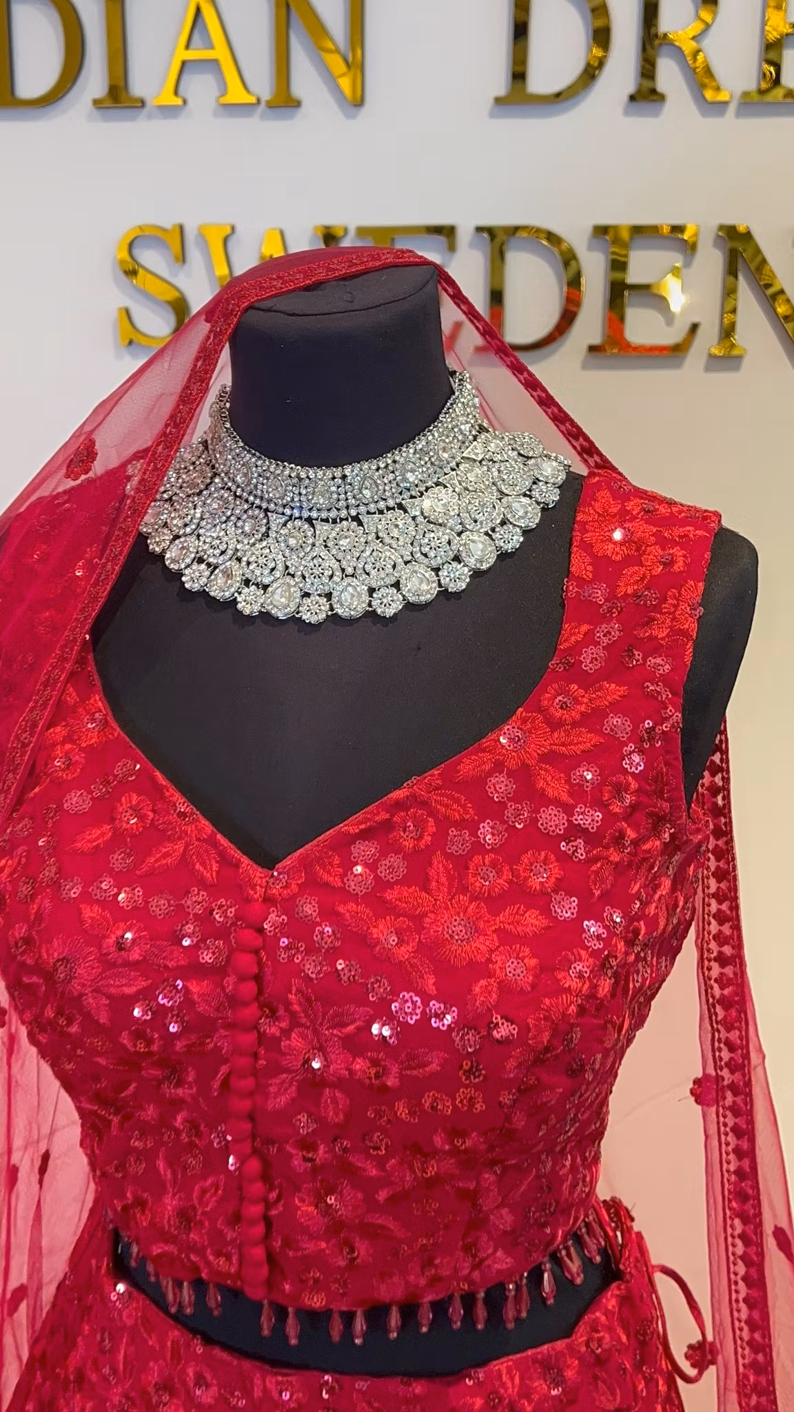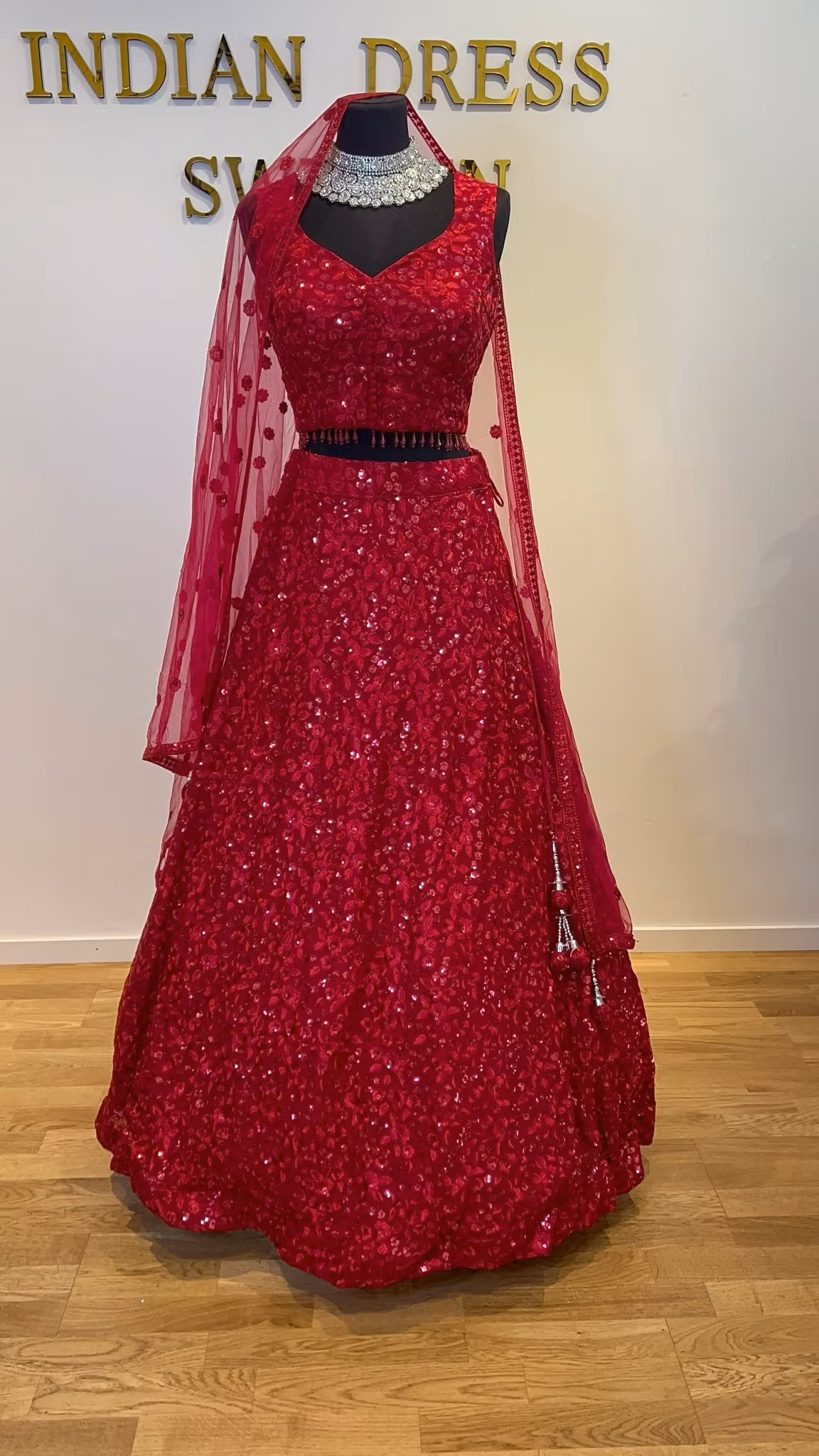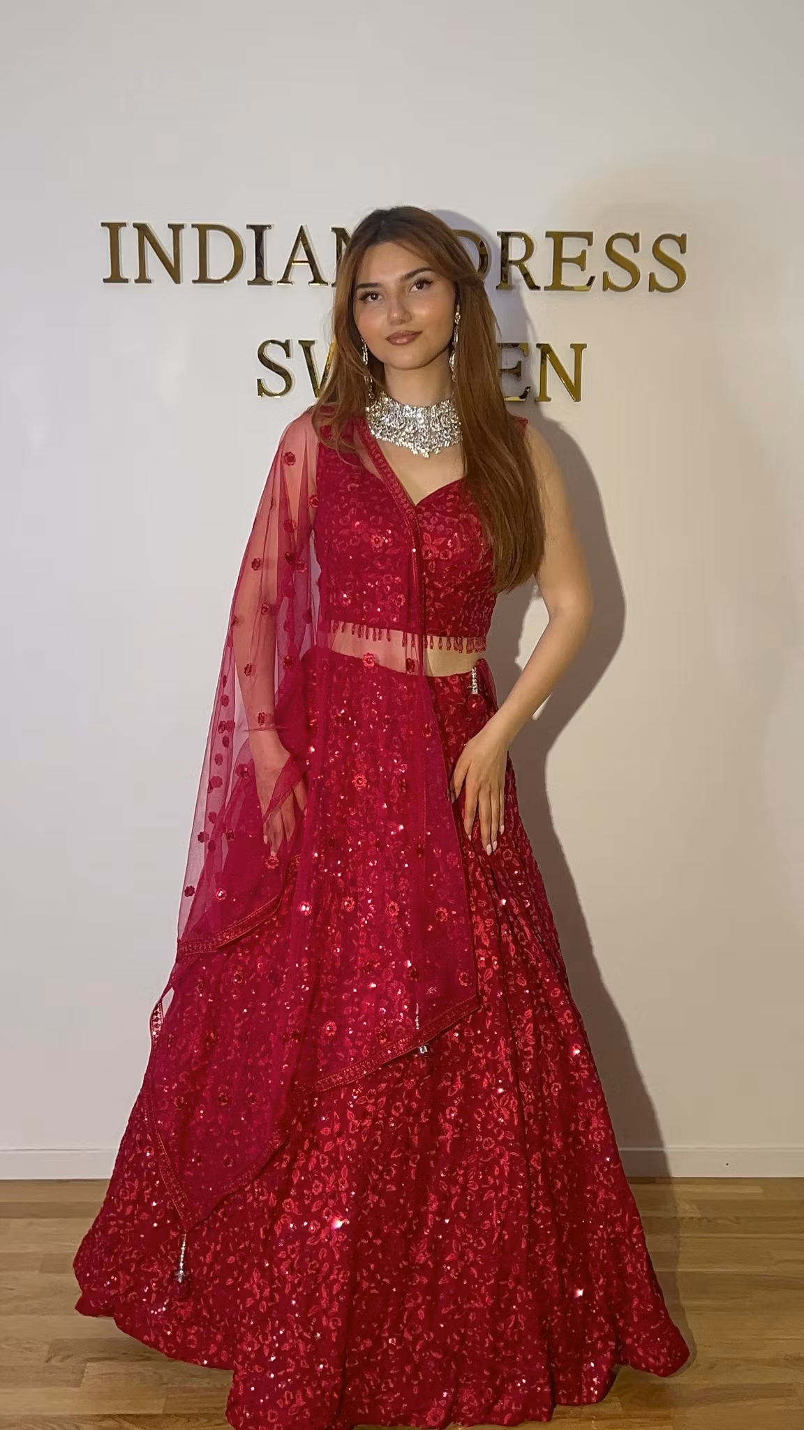 Lehenga cherry red 3 900 kr Beautiful Lehnga in Cherry red color with sequence workSize M In stock Buy now Share Stock: 1 Article Number: 831 Information Beautiful Lehnga in Cherry red color with sequence workSize M